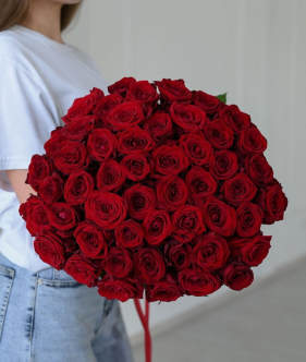 - Ярко-алые розы - классический символ страстной любви и романтического влечения. Идеальный выбор для признания в чувствах или подарка на День влюбленных.